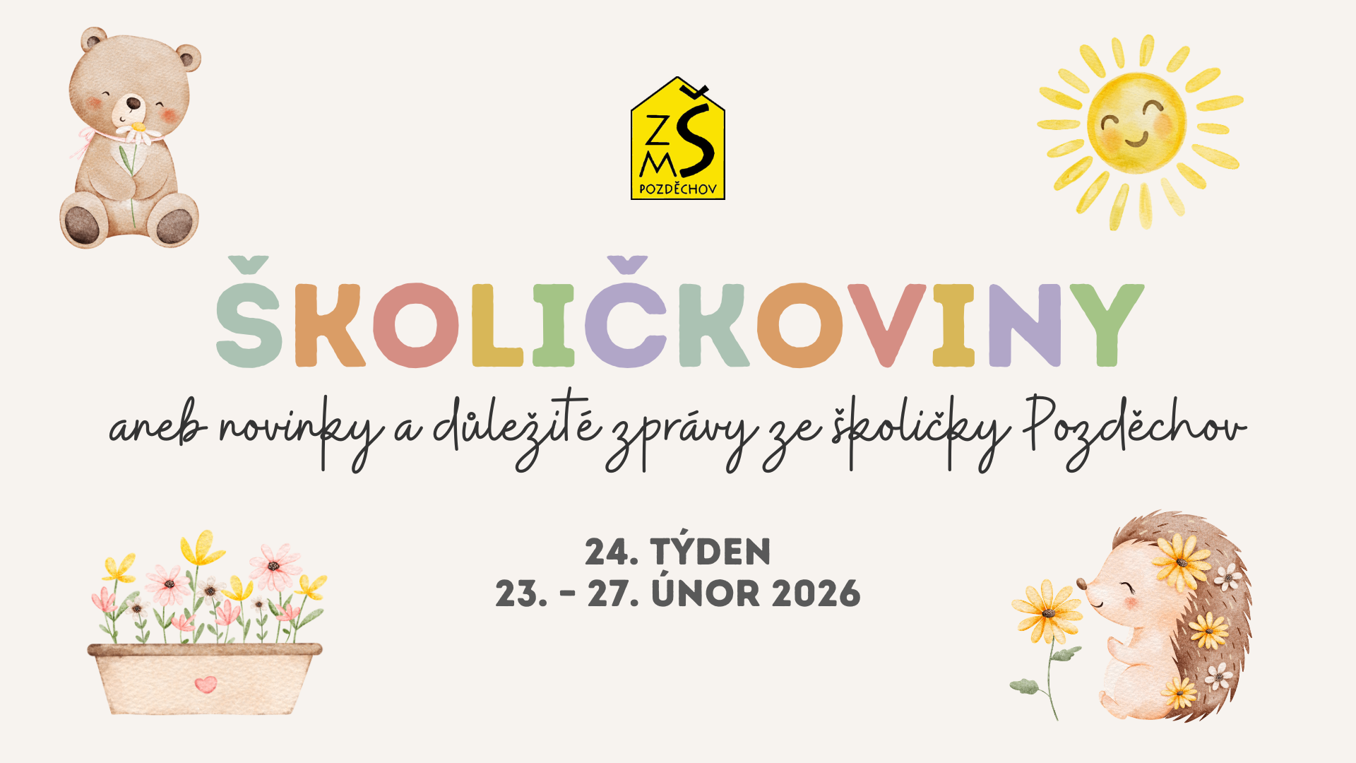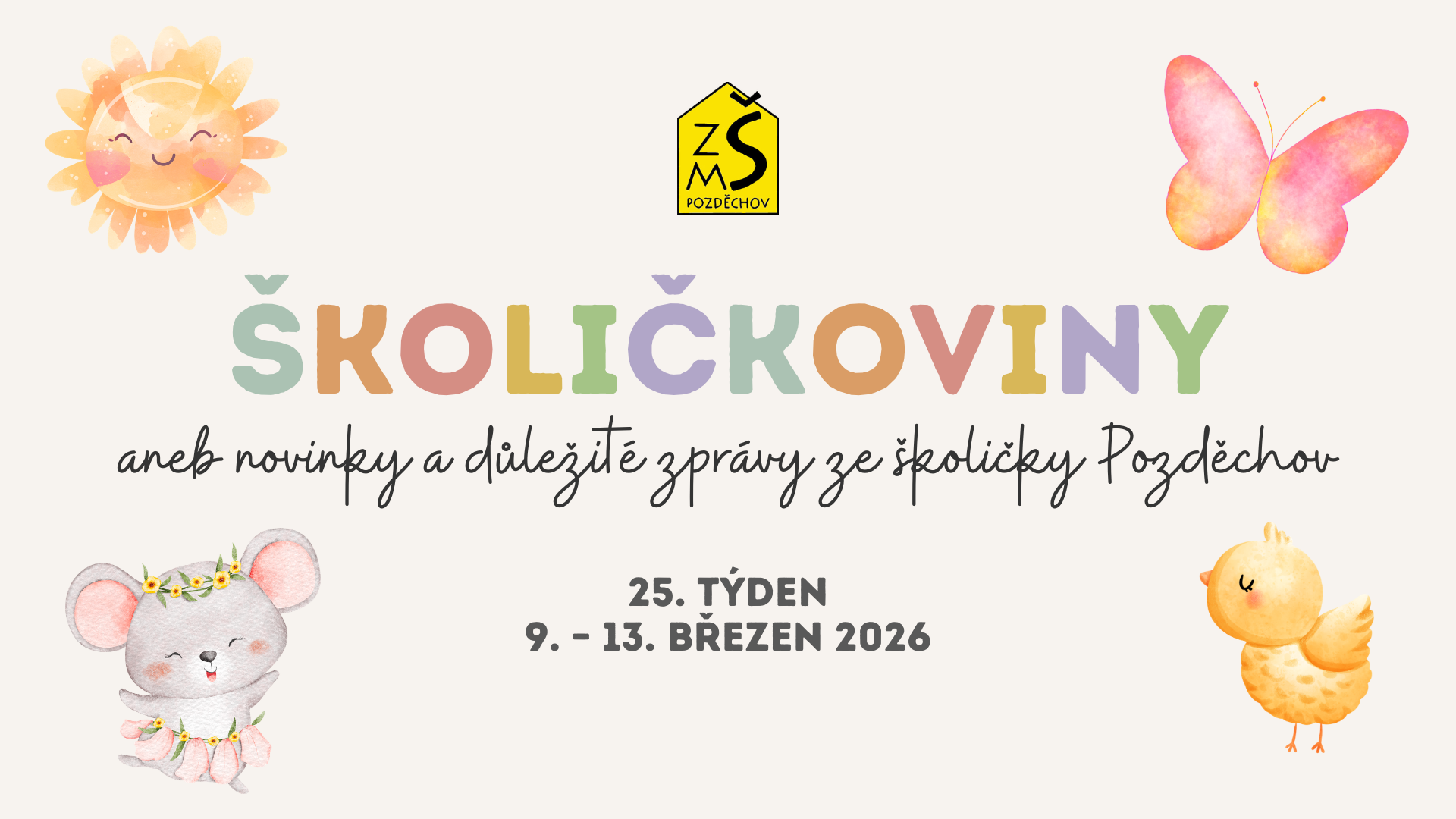 od 2. 3. 2026 začínají v Základní škole jarní prázdniny. Výuka bude znovu zahájena v pondělí 9. 3. 2026.