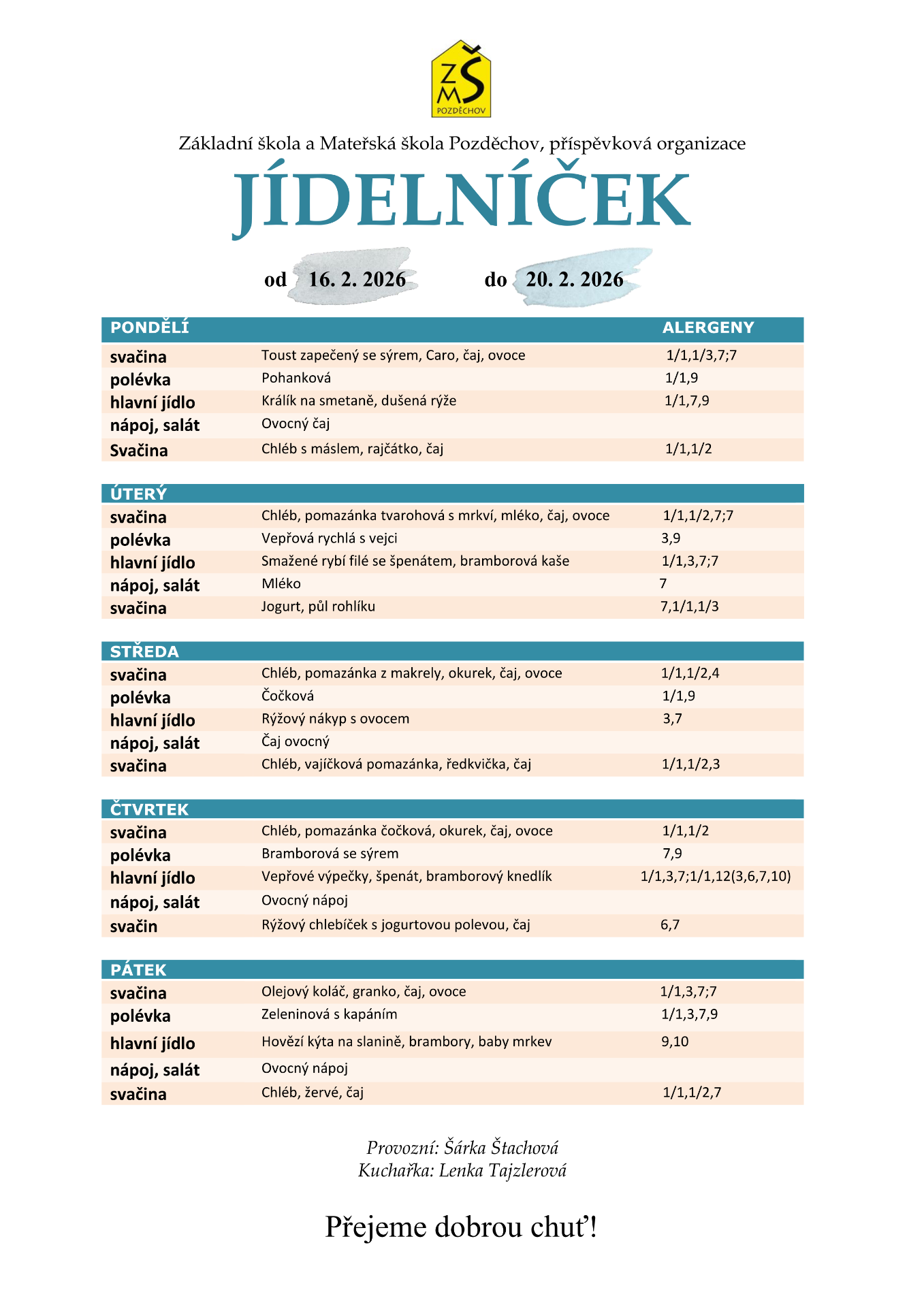 jídelníček