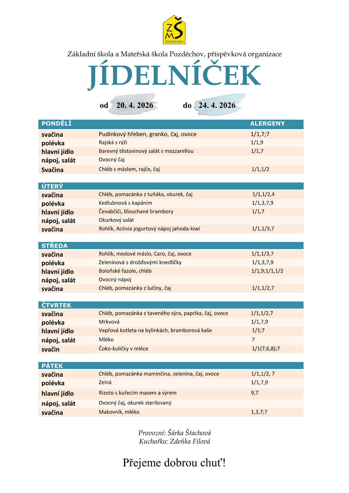 ceny jídel v ZŠ, MŠ