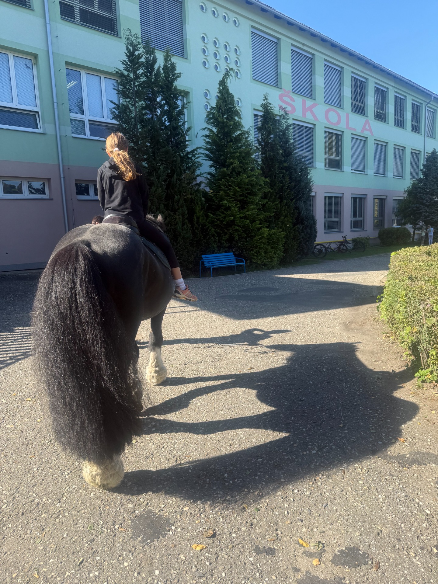 Ve školní družině jsme si užili naprosto výjimečný zážitek – díky laskavosti paní Zámostné, maminky naší žákyně z 3. třídy, k nám zavítal pravý koník! 🐴✨
