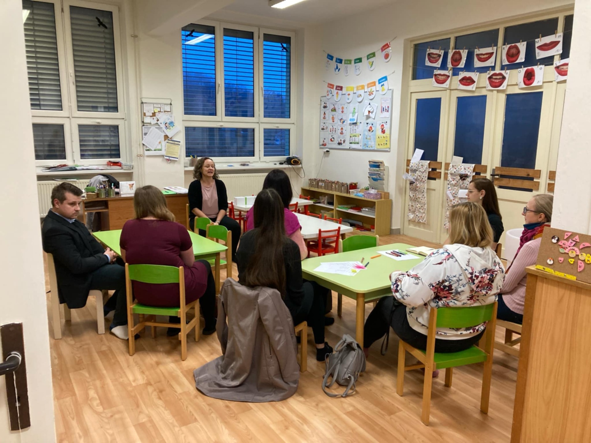 V naší mateřské škole jsme přivítali paní Mgr. Veroniku Potěšilovou, nově jmenovanou paní ředitelku Pedagogicko-psychologické poradny ve Vsetíně. Pro rodiče našich budoucích prvňáčků připravila velmi aktuální a přínosné povídání o školní zralosti a o tom, jak dětem co nejlépe pomoci v období před nástupem do 1. třídy.