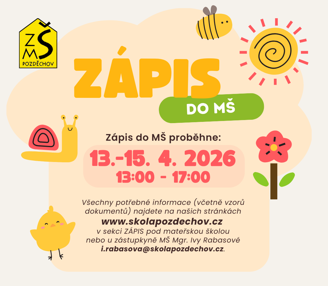 v letošním roce bude zápis do MŠ probíhat 13. - 15. 4. 2026.